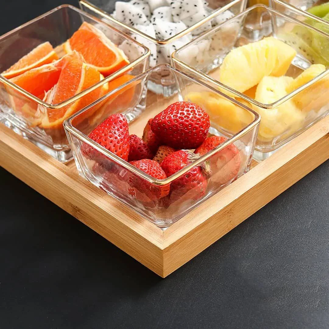 طقم مطايب حلويات زجاج مربع 6 قطع مع صحن خشبي Gglaia Y-W7098-3.5/L6