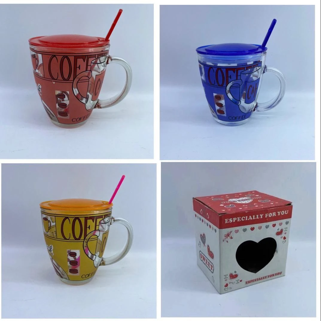 كوب عصير زجاج مع الغطاء والملعقة HMK-1208