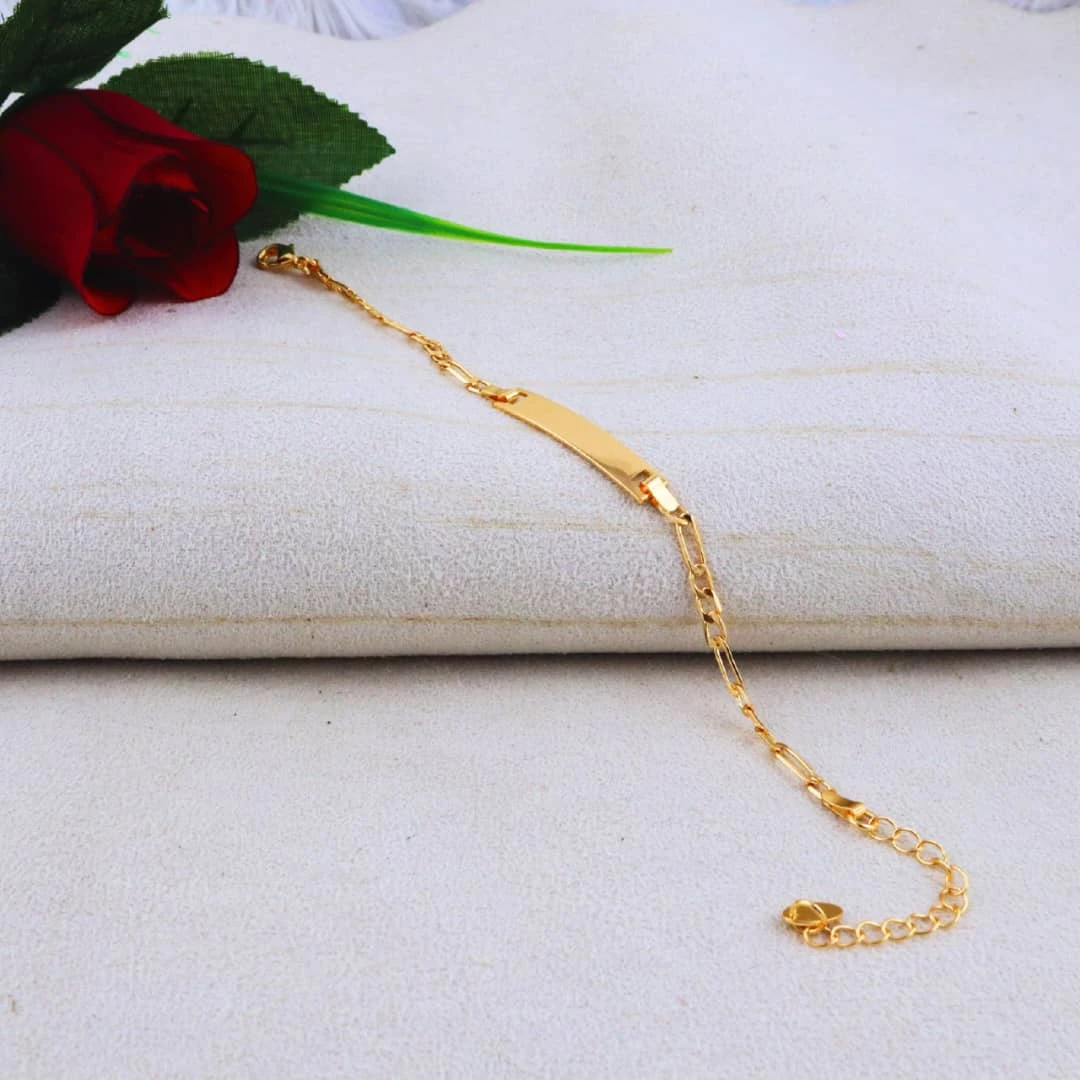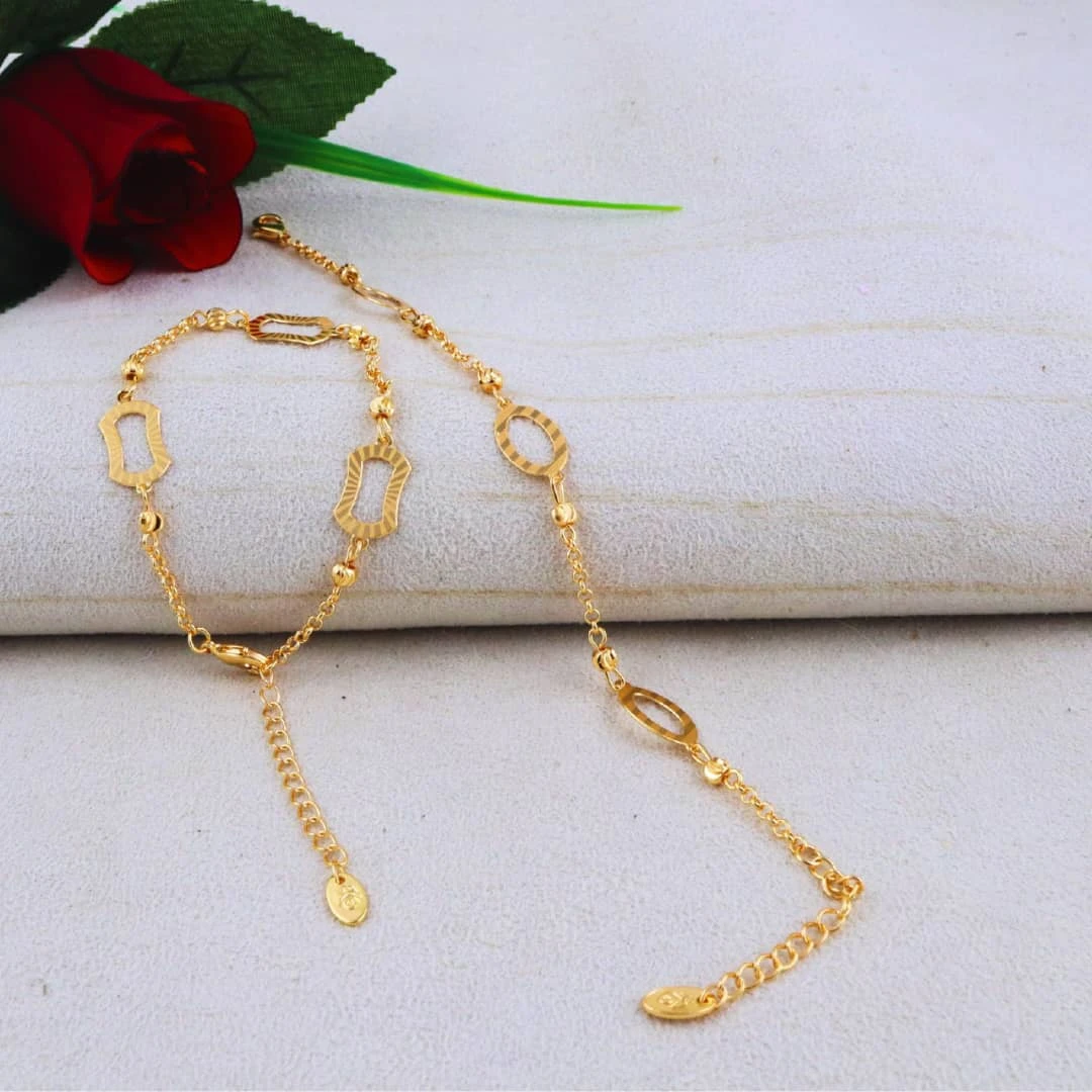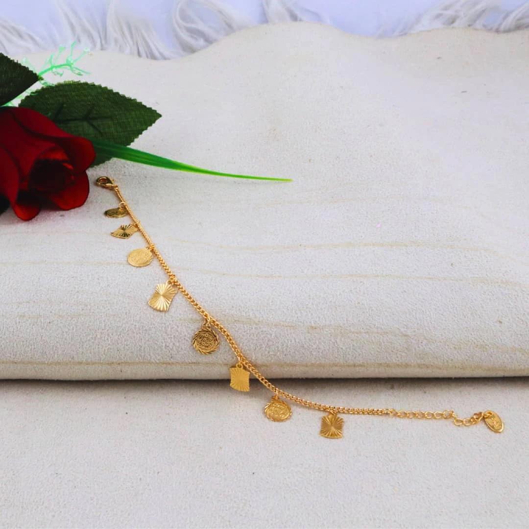 سوار يد ذهبي بتصميم محفور بسيط وتعليقات متنوعة (أوراق، مربعات، عملات صغيرة)