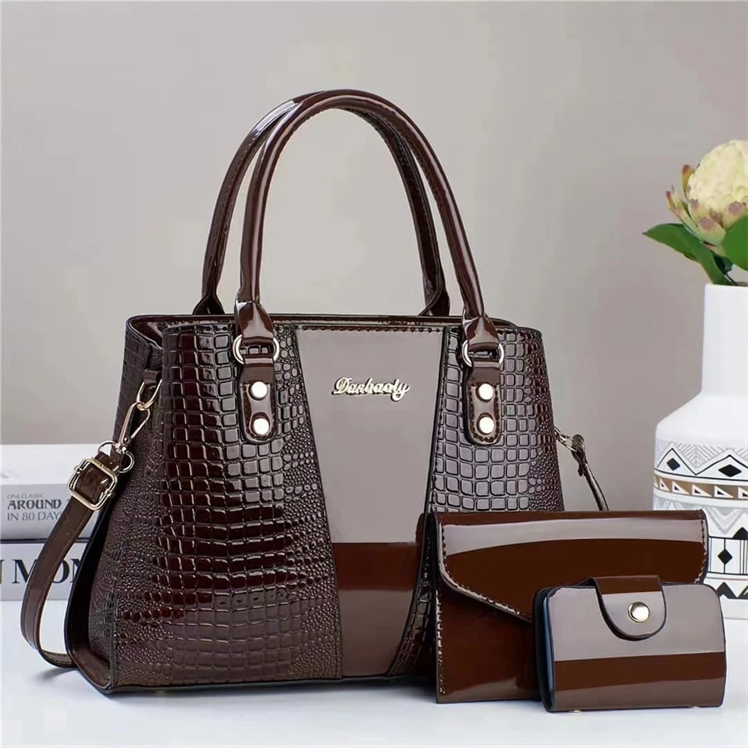 حقيبه يد نسائي الجاذبية الداكنة ( 3 قطع) لون : بني شوكولاتة من حقائب كلاسيك