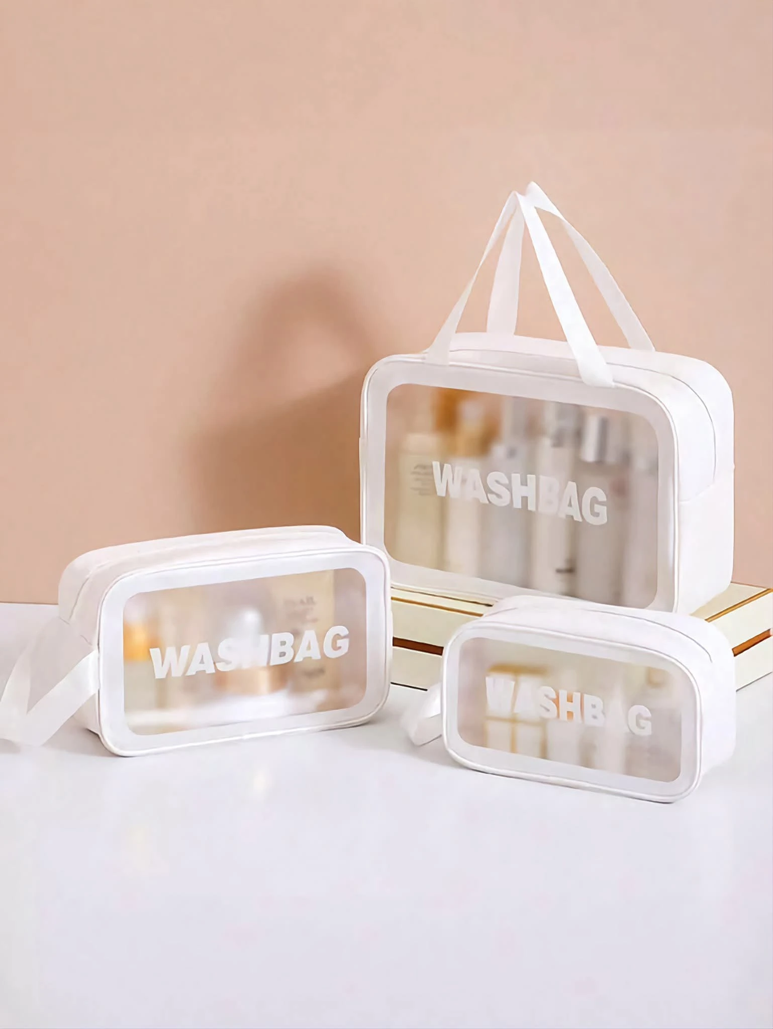 طقم حقائي للمكياج (3 قطع) لون : ابيض من حقائب كلاسيك