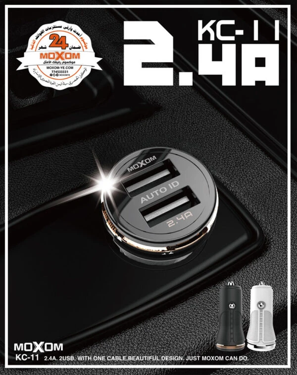 شاحن سيارة KC-11_Micro موكسوم منفذين شحن سريع 2.4A ضمان لمدة عام الأصلي مع وصلة