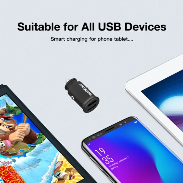 شاحن سيارة MX-VC04_Micro موكسوم منفذين مع وصلة شحن سريع ميكرو ضمان عام . MOXOM M