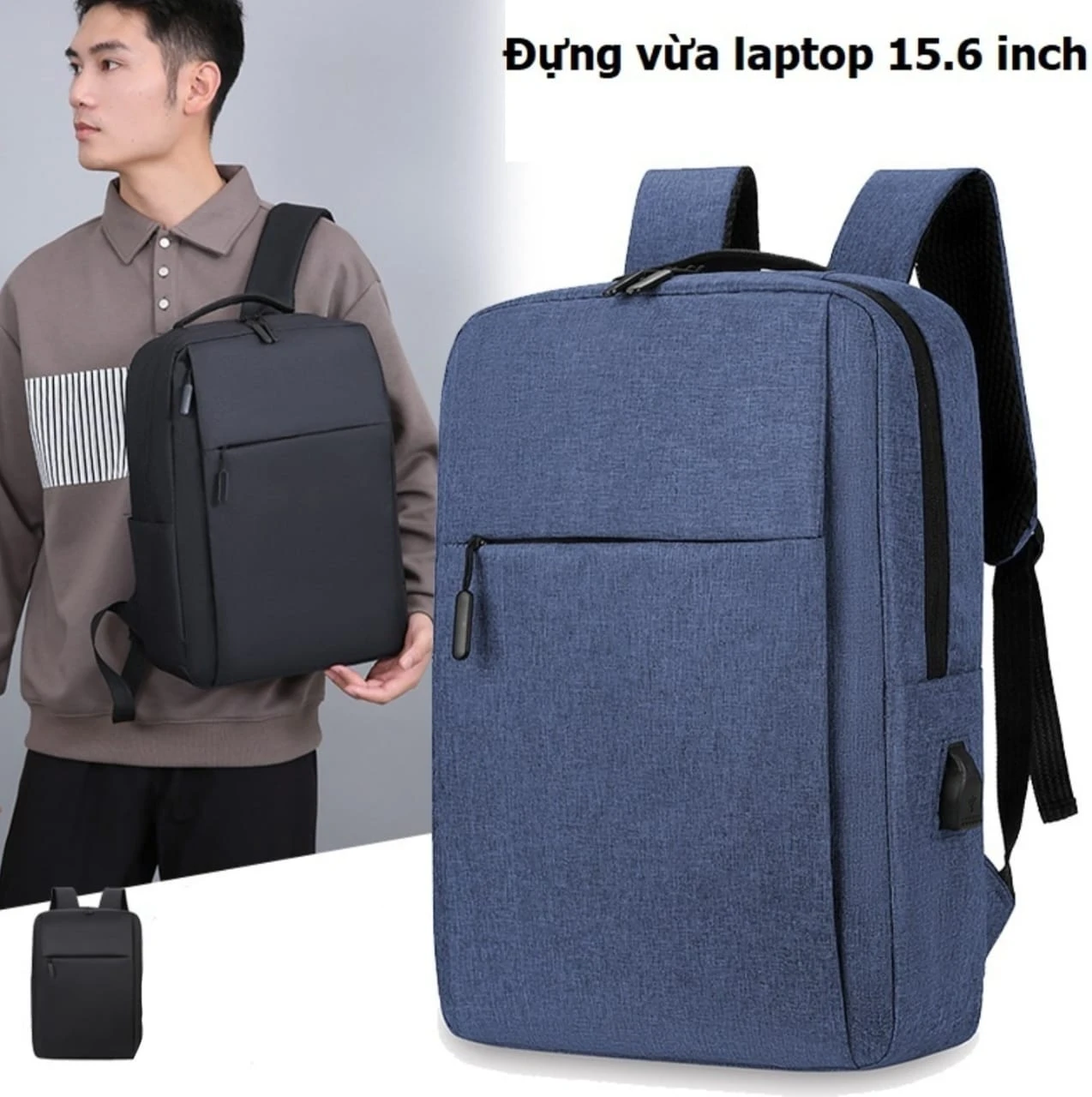 حقيبة ظهر عصرية للكمبيوتر المحمول لون ازرق من كلاسيك باج